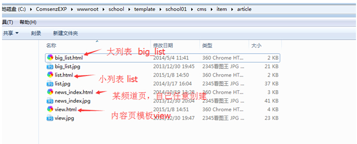 四:文章模型、图片模型等各模型的模板位置