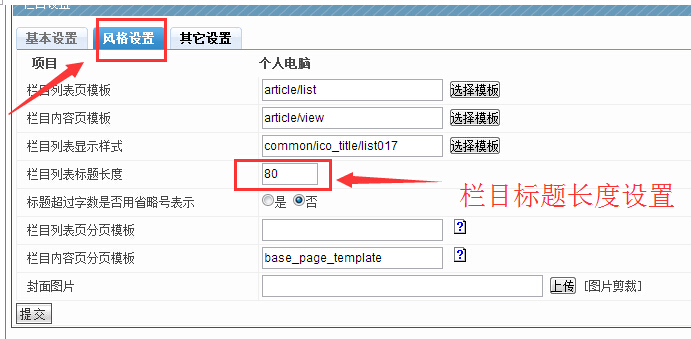 3、 栏目标题字数长度设置